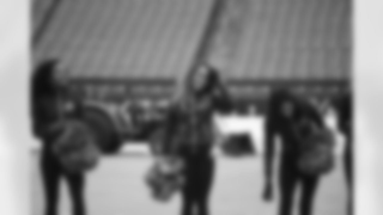 The First Ladies of Football take the field for warm-ups at FedExField before the Redskins vs. Cowboys game on Sunday, December 28, 2014.