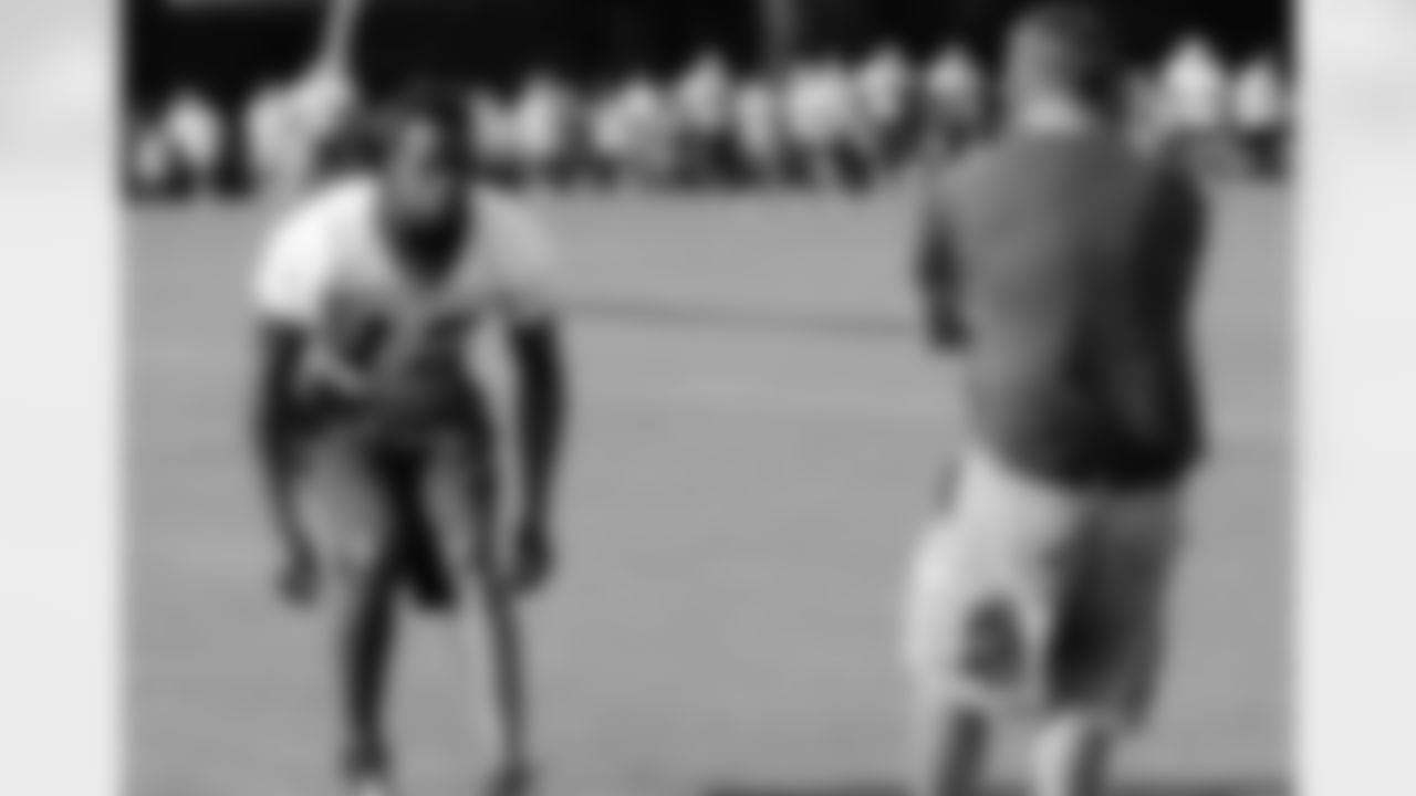 Devin Thomas and the rest of the wide receivers running drills (AP Phtoto)